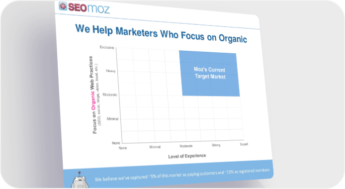We Help Marketers Who Focus on Organic We believe we’ve captured ~5% of this market as paying customers and ~15% as registered members SEOmoz Page 20 Page 22