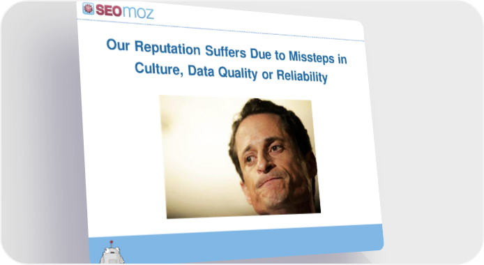 Our Reputation Suffers Due to Missteps in Culture, Data Quality or Reliability SEOmoz Page 31 Page 33