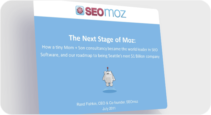 The Next Stage of Moz: How a tiny Mom + Son consultancy became the world leader in SEO Software, and our roadmap to being Seattleās next $1 Billion company Rand Fishkin, CEO& Co-founder, SEOmoz July 2011 SEOmoz Page 4 Page 6