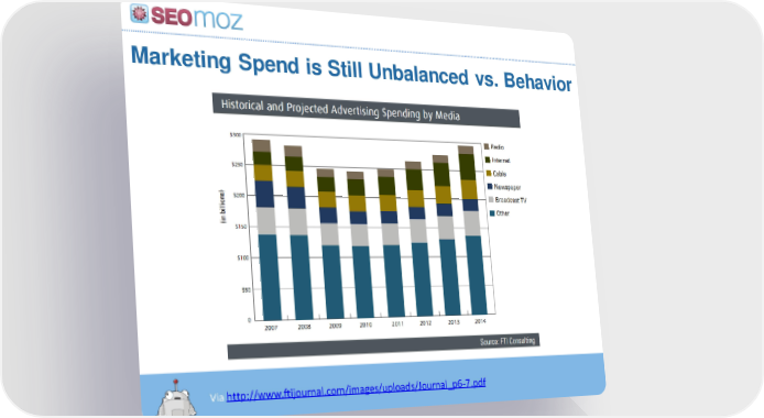 Via http://www.ftijournal.com/images/uploads/Journal _p6-7 .pdf Marketing Spend is Still Unbalanced vs. Behavior SEOmoz Page 11 Page 13