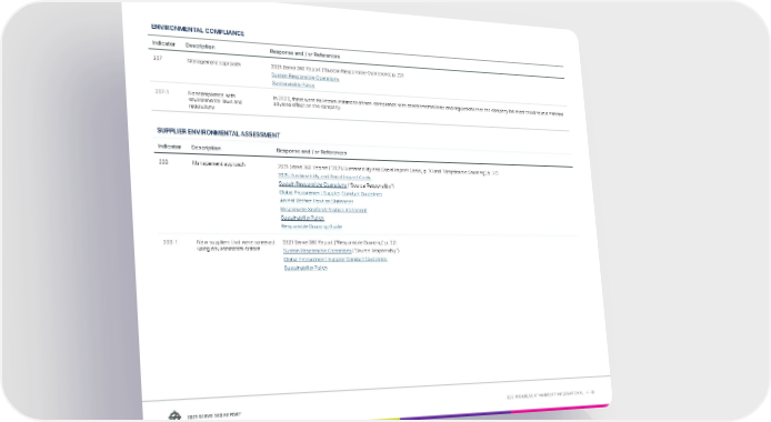 ESG PROGRESS AT MARRIOTT INTERNATIONAL → 70 ESEG PROAR TMS ORINOL ENVIRONMENTAL COMPLIANCE Indicator Description Response and / or References 307 Management approach 2021 Serve 360 Report (“Sustain Responsible Operations”, p. 23) Sustain Responsible Operations Sustainability Policy 307-1 Noncompliance with environmental laws and regulations In 2020, there were no known instances of non-compliance with environmental laws and regulations that the company believed could have a material adverse effect on the company. SUPPLIER ENVIRONMENTAL ASSESSMENT Indicator Description Response and / or References 308 Management approach 2021 Serve 360 Report (“2025 Sustainability and Social Impact Goals”, p. 10 and “Responsible Sourcing”, p. 32) 2025 Sustainability and Social Impact Goals Sustain Responsible Operations (“Source Responsibly”) Global Procurement Supplier Conduct Guidelines Animal Welfare Position Statement Responsible Seafood Position Statement Sustainability Policy Responsible Sourcing Guide 308-1 New suppliers that were screened using environmental criteria 2021 Serve 360 Report (“Responsible Sourcing”, p. 32) Sustain Responsible Operations (“Source Responsibly”) Global Procurement Supplier Conduct Guidelines Sustainability Policy