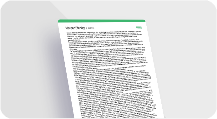 because of changes in interest rates, foreign exchange rates, default rates, prepayment rates, securities/instruments prices, market indexes, operational or financial conditions of companies or other factors. There may be time limitations on the exercise of options or other rights in securities/instruments transactions. Past performance is not necessarily a guide to future performance. Estimates of future performance are based on assumptions that may not be realized. If provided, and unless otherwise stated, the closing price on the cover page is that of the primary exchange for the subject company's securities/instruments. The fixed income research analysts, strategists or economists principally responsible for the preparation of Morgan Stanley Research have received compensation based upon various factors, including quality, accuracy and value of research, firm profitability or revenues (which include fixed income trading and capital markets profitability or revenues), client feedback and competitive factors. Fixed Income Research analysts', strategists' or economists' compensation is not linked to investment banking or capital markets transactions performed by Morgan Stanley or the profitability or revenues of particular trading desks. The "Important US Regulatory Disclosures on Subject Companies" section in Morgan Stanley Research lists all companies mentioned where Morgan Stanley owns 1% or more of a class of common equity securities of the companies. For all other companies mentioned in Morgan Stanley Research, Morgan Stanley may have an investment of less than 1% in securities/instruments or derivatives of securities/instruments of companies and may trade them in ways different from those discussed in Morgan Stanley Research. Employees of Morgan Stanley not involved in the preparation of Morgan Stanley Research may have investments in securities/instruments or derivatives of securities/instruments of companies mentioned and may trade them in ways different from those discussed in Morgan Stanley Research. Derivatives may be issued by Morgan Stanley or associated persons. With the exception of information regarding Morgan Stanley, Morgan Stanley Research is based on public information. Morgan Stanley makes every effort to use reliable, comprehensive information, but we make no representation that it is accurate or complete. We have no obligation to tell you when opinions or information in Morgan Stanley Research change apart from when we intend to discontinue equity research coverage of a subject company. Facts and views presented in Morgan Stanley Research have not been reviewed by, and may not reflect information known to, professionals in other Morgan Stanley business areas, including investment banking personnel. Morgan Stanley Research personnel may participate in company events such as site visits and are generally prohibited from accepting payment by the company of associated expenses unless pre-approved by authorized members of Research management. Morgan Stanley may make investment decisions that are inconsistent with the recommendations or views in this report. To our readers in Taiwan: Information on securities/instruments that trade in Taiwan is distributed by Morgan Stanley Taiwan Limited ("MSTL"). Such information is for your reference only. The reader should independently evaluate the investment risks and is solely responsible for their investment decisions. Morgan Stanley Research may not be distributed to the public media or quoted or used by the public media without the express written consent of Morgan Stanley. Information on securities/instruments that do not trade in Taiwan is for informational purposes only and is not to be construed as a recommendation or a solicitation to trade in such securities/instruments. MSTL may not execute transactions for clients in these securities/instruments. To our readers in Hong Kong: Information is distributed in Hong Kong by and on behalf of, and is attributable to, Morgan Stanley Asia Limited as part of its regulated activities in Hong Kong. If you have any queries concerning Morgan Stanley Research, please contact our Hong Kong sales representatives. Morgan Stanley is not incorporated under PRC law and the research in relation to this report is conducted outside the PRC. Morgan Stanley Research does not constitute an offer to sell or the solicitation of an offer to buy any securities in the PRC. PRC investors shall have the relevant qualifications to invest in such securities and shall be responsible for obtaining all relevant approvals, licenses, verifications and/or registrations from the relevant governmental authorities themselves. Neither this report nor any part of it is intended as, or shall constitute, provision of any consultancy or advisory service of securities investment as defined under PRC law. Such information is provided for your reference only. Morgan Stanley Research is disseminated in Brazil by Morgan Stanley C.T.V.M. S.A.; in Mexico by Morgan Stanley México, Casa de Bolsa, S.A. de C.V which is regulated by Comision Nacional Bancaria y de Valores. Paseo de los Tamarindos 90, Torre 1, Col. Bosques de las Lomas Floor 29, 05120 Mexico City; in Japan by Morgan Stanley MUFG Securities Co., Ltd. and, for Commodities related research reports only, Morgan Stanley Capital Group Japan Co., Ltd; in Hong Kong by Morgan Stanley Asia Limited (which accepts responsibility for its contents) and by Bank Morgan Stanley AG, Hong Kong Branch; in Singapore by Morgan Stanley Asia (Singapore) Pte. (Registration number 199206298Z) and/or Morgan Stanley Asia (Singapore) Securities Pte Ltd (Registration number 200008434H), regulated by the Monetary Authority of Singapore (which accepts legal responsibility for its contents and should be contacted with respect to any matters arising from, or in connection with, Morgan Stanley Research) and by Bank Morgan Stanley AG, Singapore Branch (Registration number T11FC0207F); in Australia to