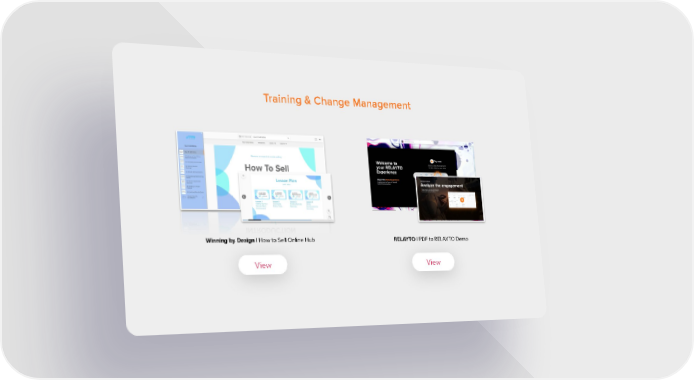 Training & Change Management RELAYTO | Experience Academy Hub Winning by Design | How to Sell Online Hub RELAYTO | PDF to RELAYTO Demo View View View Showcase Page 19