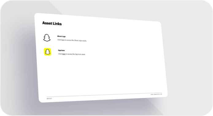 Snapchat Brand Book Page 10 Page 12Asset Links Ghost Logo Click here to access the Ghost Logo assets. App Icon Click here to access the App Icon asset. SNAPCHAT BRAND ELEMENTS QUICK GUIDE