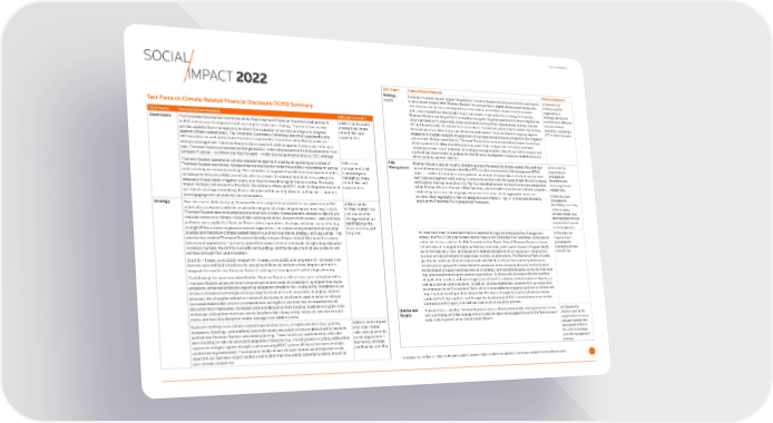 TCFD APPENDIX SOCIAL 1 IMPACT 2022 TCFD Theme Thomson Reuters Response Relevant Disclosure Strategy Transition-related risks are largely mitigated via Thomson Reuters net-zero commitment and interim c) Describe the (con’t) science-based targets. With Thomson Reuters’ focus on primarily digital products and services for resilience of the its customers, the business strategy is inherently resilient to multiple climate-related scenarios organization’s Task Force on Climate-Related Financial Disclosure (TCFD) Summary as it is less exposed to physical risks like price increases in raw materials or energy, for example. strategy, taking into Thomson Reuters sourcing of 100% renewable energy for its global operations further mitigates the consideration different 1 potential impacts of rising energy prices associated with fossil fuel-based energy sources. Our use climate-related TCFD Theme Thomson Reuters Response Relevant Disclosure scenarios, including a Governance The Corporate Governance Committee of the Board oversees Thomson Reuters overall approach a) Describe the board’s of cloud-based models for data services also ensures the resiliency of our digital services by limiting to ESG and ensures its alignment with our long-term business strategy. The committee receives oversight of climate- the exposure of our data to physical climate-related impacts. Thomson Reuters’ ongoing supplier 2°C or lower scenario. periodic updates from management to inform the evaluation of our ESG strategy and progress related risks and engagement program supports the alignment of our suppliers’ actions on climate and risk mitigation against climate-related goals. The Corporate Governance Committee is further supported by the opportunities. with our own climate commitments. Thomson Reuters also pursues operational leases in premium HR Committee as well as the Audit Committee and the Risk Committee of the Board, which has of昀椀ce locations with ef昀椀cient building systems, which helps mitigate the risks associated with ultimate oversight over Thomson Reuters risk assessment and management processes. In the past mandates on lower use of emissions technologies/energy supplies. Overall, our risk framework and site-level facilities monitoring enables the identi昀椀cation of adaptation measures needed across our year, Thomson Reuters conducted its 昀椀rst global ESG materiality assessment and developed our new company Purpose — to Inform the Way Forward — which now collectively anchor our ESG strategy. of昀椀ce locations and other facilities. Thomson Reuters operational climate-related management is led by an operating committee of b) Describe Risk Thomson Reuters uses an industry standard approach for assessing climate-related risks and their a) Describe the Management organization’s Thomson Reuters executives, representing the most senior body of executives responsible for setting management’s role potential impacts and integrates identi昀椀ed ESG risks into the enterprise risk management (ERM) and executing our company strategy. This committee is supported by additional management bodies, in assessing and process. The Risk & Compliance team performs an annual enterprise risk assessment exercise with processes for managing climate- each Business Segment and Enabling Function and partners with the heads of each division to assess identifying and including the Enterprise Risk Committee, which assesses the status of identi昀椀ed risks, reviews the assessing climate- related risks and and describe their top respective risks. The risks identi昀椀ed by each business function are categorized adequacy of applicable mitigation plans, and reports these 昀椀ndings to this committee. The Social related risks. Impact Institute, led by our Vice President, Government Affairs and ESG, leads the implementation of opportunities. within Thomson Reuters Enterprise Risk Taxonomy, which classi昀椀es risks into pre-de昀椀ned categories, our climate strategy, embedding climate initiatives within our departments and business segments establishing a common risk language and a consistent means of risk aggregation across our c) Describe how and engaging internal and external stakeholders. business. Upon aggregation, risks are assigned a Low, Medium, High, or Critical level of severity processes for based on the Enterprise Risk Management Framework. identifying, assessing, Strategy Over the course of the last year, Thomson Reuters completed a comprehensive update of our ESG a) Describe the and managing materiality assessment, with the results informing our strategy and guiding our reporting. In 2022, climate-related risks climate-related risks Thomson Reuters also conducted a comprehensive climate-related scenario analysis to identify and and opportunities are integrated into the evaluate exposure to climate-related risks and opportunities. As part of this process, various climate the organization has organization’s overall identi昀椀ed over the pathways were applied to Thomson Reuters direct operations, strategy, and value chain, re昀氀ecting risk management. a range of future states of global emissions trajectories. The scenario analysis assessment covered short, medium, and b) Describe the physical and transition climate-related risks on our direct operations, strategy, and value chain. This long term. As material climate risks are identi昀椀ed and assessed through our Enterprise Risk Management exercise has enabled Thomson Reuters to identify relevant climate-related risks as well as several process, the Risk & Compliance team reports these to the Enterprise Risk Committee, comprised of organization’s key areas of opportunity — primarily around the procurement of renewable energy and participation senior executives, as well as the Risk Committee of the Board. Many of Thomson Reuters relevant processes for climate risks are managed through our Business Continuity and Disaster Recovery Pro