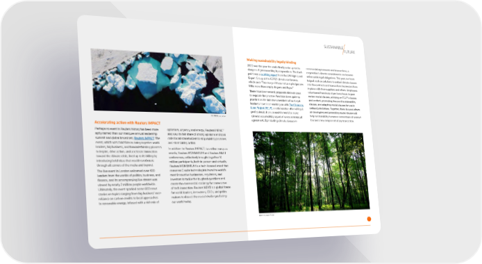 SUSTAINABLE FUTURE Making sustainability legally binding 2022 was the year the world 昀椀nally woke up to the commercial agreements and transactions, a dangers of greenwashing by corporations. The 昀氀ash corporation’s climate commitments can become point was a scathing report from the UN High-Level enforceable legal obligations. This year, our team Expert Group at the COP27 climate conference, helped work on solutions to embed climate clauses which said: “Too many of these net zero pledges are into the contracts and transactions businesses have little more than empty slogans and hype.” in place with their suppliers and others. Employees There have been several proposals since on ways volunteered hundreds of pro bono hours to peer to regulate the practice. Few have been quite so review model clauses, advising on TCLP’s clauses practical as the initiatives members of our Legal and content, promoting the use of sustainability business have been working on with The Chancery clauses, and adapting model clauses for use in Lane Project (TCLP), a collaborative effort of legal various jurisdictions. Together, these focused efforts professionals from around the world to make on developing and promoting model clauses will climate sustainability a part of every commercial help sustainability become a cornerstone of contract REUTERS/Lucas Jackson law and a key component of any transaction. agreement. By including climate clauses in Accelerating action with Reuters IMPACT Perhaps no event in Reuters history has been more optimism, urgency, and energy, Reuters IMPACT aptly named than our marquee annual leadership also saw its fair share of strong opinions and bold summit and global broadcast, Reuters IMPACT. The calls for all stakeholders to stop making promises event, which was conceived to bring together world and start taking action. leaders, big business, and forward-thinking pioneers In addition to Reuters IMPACT, two other marquee to inspire, drive action, and accelerate innovation events, Reuters MOMENTUM and Reuters NEXT toward the climate crisis, lived up to its billing by conferences, collectively brought together 10 introducing bold ideas that would reverberate million participants, both in-person and virtually. through all corners of the media and beyond. Reuters MOMENTUM is a tech-focused event that The live event in London welcomed over 400 convenes C-suite technologists from the world’s leaders from the worlds of politics, business, and most innovative businesses, regulators, and 昀椀nance, and its accompanying live stream was investors to tackle the toughest questions and viewed by nearly 2 million people worldwide. create the commercial roadmap for a new wave Ultimately, the event sparked some 600 news of tech innovation. Reuters NEXT is a global forum stories on topics ranging from big business’ over- for world leaders, innovators, CEOs, and policy reliance on carbon credits to local approaches makers to dissect the crucial challenges facing to renewable energy. Infused with a rich mix of our world today. REUTERS/Kacper Pempel 1717