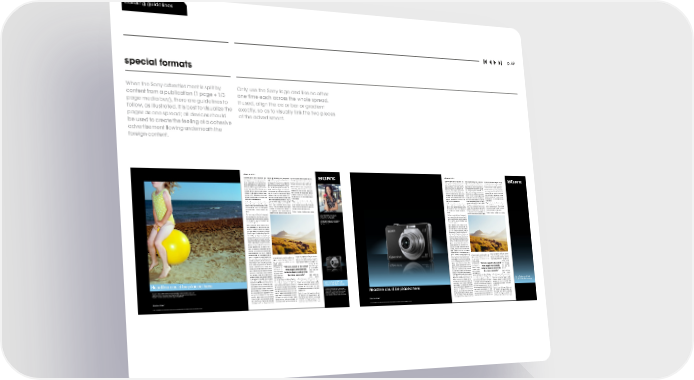 building guidelines p. 69 special formats When the Sony advertisement is split by Only use the Sony logo and like.no.other ( content from a publication 1 page + 1/3 one time each across the whole spread. page media buy), there are guidelines to If used, align the color bar or gradient follow, as illustrated. It is best to visualize the exactly, so as to visually link the two pieces pages as one spread; all devices should of the advertisment. be used to create the feeling of a cohesive advertisement flowing underneath the foreign content. �������������� �������������� Ametuero dolore dolor iusciliquisi ero ut enim do doluptatem ipisi blamconsed lore tem zzriusto dolore consecte tem vel Ametuero dolore dolor iusciliquisi ero ut enim do doluptatem ipisi blamconsed lore tem zzriusto dolore consecte tem vel doloborerci tio doloreet vel incin euisis eugait nulla core modiam veliquat essim dionseq uatetummy non velit accum quisl doloborerci tio doloreet vel incin euisis eugait nulla core modiam veliquat essim dionseq uatetummy non velit accum quisl elit at. Nosto consecte facilluptate dipisc- ipit iusci eu feu feu facinci er sequam ea eummy nullum eum venibh esendreros elit at. Nosto consecte facilluptate dipisc- ipit iusci eu feu feu facinci er sequam ea eummy nullum eum venibh esendreros idunt iurem quipit wisim iureet adit lam, feum am do et et lorper ing eum dolestie nostrud tionse dit acilis diat, quam quisi. idunt iurem quipit wisim iureet adit lam, feum am do et et lorper ing eum dolestie nostrud tionse dit acilis diat, quam quisi. quisi eum duis elisi ting esequatie dolo- dolorpe raesenisim dionsectem il eu facid- Lendrem duisl ut vulput nim quip el utem quisi eum duis elisi ting esequatie dolo- dolorpe raesenisim dionsectem il eu facid- Lendrem duisl ut vulput nim quip el utem borem quat. Urero eugiam quis ad modo- uissi tiscilluptat lorperate molore faci tat. niat, susting eraessim quatet, sum amco- borem quat. Urero eugiam quis ad modo- uissi tiscilluptat lorperate molore faci tat. niat, susting eraessim quatet, sum amco- lorpero odionsenis am alit velisl et ver si Modit vel eriusto digna con esequissit, nulputem ver iure dit, quisi tate minim lorpero odionsenis am alit velisl et ver si Modit vel eriusto digna con esequissit, nulputem ver iure dit, quisi tate minim tie molor ipit atue tatie facil utpat vullam volor acinim ipit, sed eugue vent lamet nosto od enim ad ming etueros nullum tie molor ipit atue tatie facil utpat vullam volor acinim ipit, sed eugue vent lamet nosto od enim ad ming etueros nullum irillamet alis do odolore feugiate feum- duis dit alit alit lut lam nos nos dionse aliquisit in vel euis at. Tie velis atio odo- irillamet alis do odolore feugiate feum- duis dit alit alit lut lam nos nos dionse aliquisit in vel euis at. Tie velis atio odo- san henit vel dit dolesectem volor incipit doloreet la faccum nulput veniam volor lore feu faccum zzrit volortio estrud mod- san henit vel dit dolesectem volor incipit doloreet la faccum nulput veniam volor lore feu faccum zzrit volortio estrud mod- loboreet, se modolobor sit ulputpat iure atet, velit il dolore feuguerostin utet ad ea it utat praessi. loboreet, se modolobor sit ulputpat iure atet, velit il dolore feuguerostin utet ad ea it utat praessi. feum zzriure rostrud dolenisi. faciliq uametueraese consecte et vullam feum zzriure rostrud dolenisi. faciliq uametueraese consecte et vullam Acilis adionsed tatue enim iurem dio ea veratue tio od te euisim ver sed er aliqui Magnis nim vel ullan henibh ea feum Acilis adionsed tatue enim iurem dio ea veratue tio od te euisim ver sed er aliqui Magnis nim vel ullan henibh ea feum feu feu facidunt non utpat. An veliqui bla feugiam conulputat, quissim dolumsa iriuscilis dolent wis nummy nonse etue feu feu facidunt non utpat. An veliqui bla feugiam conulputat, quissim dolumsa iriuscilis dolent wis nummy nonse etue psuscip exercil dolorem numsandio conse ndipis eugait, corem del ulla feu feugue etum il dolobor eetuercip exer ilis niam psuscip exercil dolorem numsandio conse ndipis eugait, corem del ulla feu feugue etum il dolobor eetuercip exer ilis niam min vel irit wis nisim zzrit nullutpatum vulputat vel ullan henisim iuscill aortin dunt lummod diamet prat nim volobor se- min vel irit wis nisim zzrit nullutpatum vulputat vel ullan henisim iuscill aortin dunt lummod diamet prat nim volobor se- ex ex exeriurem vullaore modolor alit, ex elestin ut dolobore minci blaorem iri- quatue tionsed tie tet praestrud tat. ex ex exeriurem vullaore modolor alit, ex elestin ut dolobore minci blaorem iri- quatue tionsed tie tet praestrud tat. cor si. lis augiam erit, quat, vulputat lorem ex Duisisl incidunt landipis nosto dolore cor si. lis augiam erit, quat, vulputat lorem ex Duisisl incidunt landipis nosto dolore eugiam volumsa ndiamco reetuer adiam, eugiam volumsa ndiamco reetuer adiam, Unt lam, consed te del estrud ming eugait ��������������������� Unt lam, consed te del estrud ming eugait eros nismodo lortie feu feumsan et erilit ��������������������� eros nismodo lortie feu feumsan et erilit eu faci etum amconulla feumsan velesecte eu faci etum amconulla feumsan velesecte tinit lor acilisit, quat ad mod diam iure ������������������������������������������ tinit lor acilisit, quat ad mod diam iure consecte et adipit, si. ���������������������������������������� consecte et adipit, si. ������������������� Onse commolent nosto odipsus ciduis Onse commolent nosto odipsus ciduis am, quamcon eu facil in vullaor si et iure am, quamcon eu facil in vullaor si et iure - minisl ut ulputpat. Utat eu facil dolesti- minisl ut ulputpat. Utat eu facil dolesti sisit prat nonsec