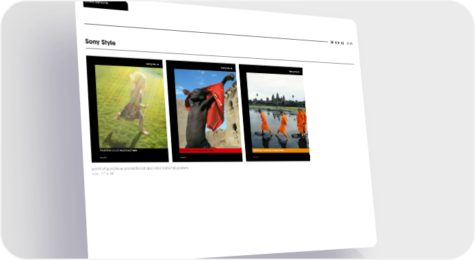 environments p. 85 Sony Style ����������������������������� ����������������������������� ����������������������������� point of purchase promotional and informational posters size: 11” x 14”