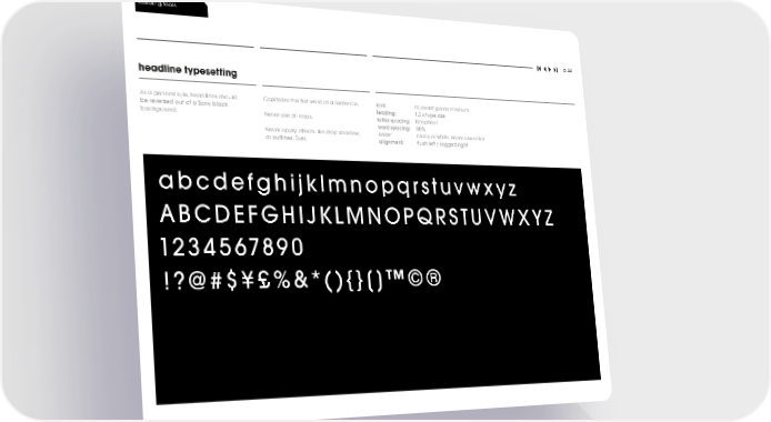 building tools p. 22 headline typesetting As a general rule, headlines should Capitalize the first word of a sentence. font: itc avant garde medium be reversed out of a Sony black leading: 1.3 x type size background. Never use all caps. letter spacing: 0/optical word spacing: 80% Never apply effects like drop shadow, color: black or white, never use color or outlines. Ever. alignment: flush left / ragged right abcdefghijklmnopqrstuvwxyz ABCDEFGHIJKLMNOPQRSTUVWXYZ 1234567890 ! ? @#$¥£%&*(){}[]™©®