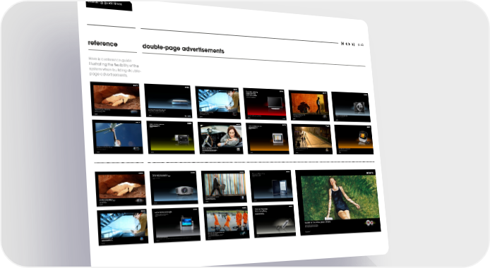 building guidelines p. 65 reference double-page advertisements Here is a reference guide illustrating the flexibility of the system when building double- page advertisements. ������������������� ��������������� ����������������� � � ��������������������������������������� ����������������������������������������������������� ������������������������������� ������������������������������������������������ ������������������������������� ������������������������������� ������������������������������� � ��������������������������������������������������������������������������������������������������������������������������������������� ����������������������������������������������������������������������������������� ������������������������������������������������������������������������������ ������������������������������������������������������������������������������ � ���������������������������������������������������������������������������������������������������������������������������������� ����������������������������������������������������������������������������������� ����������������������������������������������������������������������������������� ���������������������������������������������������������������������������������� �������������������������������������������������������������������������������������������������������������������������������������������� ���������������������������������������������������������������������������������� ����������������������������������������������������������������������������������� ����������������������������������������������������������������������������� ������������������������������������������������������������������������������� ������������������������������������������������������������������������������� ����������������������������������������������������������������������������� �� ����������������������������������������������������������������������������������������������������������������������������� �������������������������������������������������������������������� ���������� ������������������������������������ �