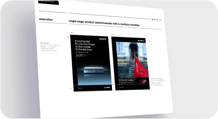 building guidelines p. 62 execution single-page product advertisement with a multiple headline 4.35 h 4.35 h 4.35 h h ������������������ Big headline ��������������������� font: ITC Avant Garde Medium ��������������� leading: 1.1 x type size word spacing: 80% �������������������� letter spacing: 0/optical � � �������������������������� ���������������������������������������������� ��������������������������������������������������������� �������������������������������� ���������������������������������������� ���������������� �������������������������������� Multiple line heading ������������������������ font: ITC Avant Garde Medium ����������������������������������������������������������������������� leading: 1.1 x type size ������������������������������������������������������������������������������� ��������������������������������� word spacing: 80% letter spacing: 0/optical 5 h ������������������������������������������������������������������������������������������������������������������������������������ ���������������������������������������������������������������������������������������������������������������������������