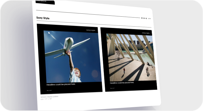 SONY Brand Book Page 82 Page 84environments p. 83 Sony Style ������������������������������ ������������������������������ window display posters size: 112” x 113”