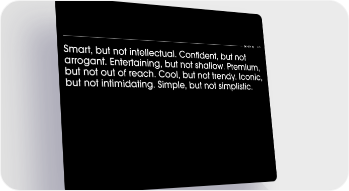 pp. 5. 5 Smart, but not intellectual. Confident, but not arrogant. Entertaining, but not shallow. Premium, but not out of reach. Cool, but not trendy. Iconic, but not intimidating. Simple, but not simplistic.