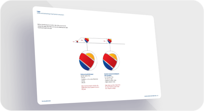 Logo Online and standard logo Heart Symbol comparison Before developing any creative, take a few moments to review this page and make sure you are selecting the right Southwest logo for the job. 39px 40px 14px Online artwork (flat gray) Standard artwork (including the Use this version for: silver gradient) • Favicon Use this version for: • Facebook profile picture thumbnail • Mobile app icon • Online • Facebook profile picture • Mobile • Twitter (Social media) Note: Use this artwork only when the Note: Always use this artwork when height of the Heart Symbol is less than the Heart Symbol appears larger 40 pixels. than 40 pixels in height. The Visual Elements Southwest Airlines Brand Style Guide | 22