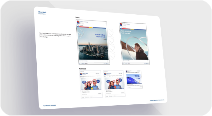 Direct Mail Heart Frame Social The Heart Watermark always appears on the top left on social Seek adventure. posts as it is nearest to the branding avatar which is used in Get rewarded. place of a logo. Paid Social ® Rapid Rewards Style Guide Southwest Airlines Brand Style Guide | 113