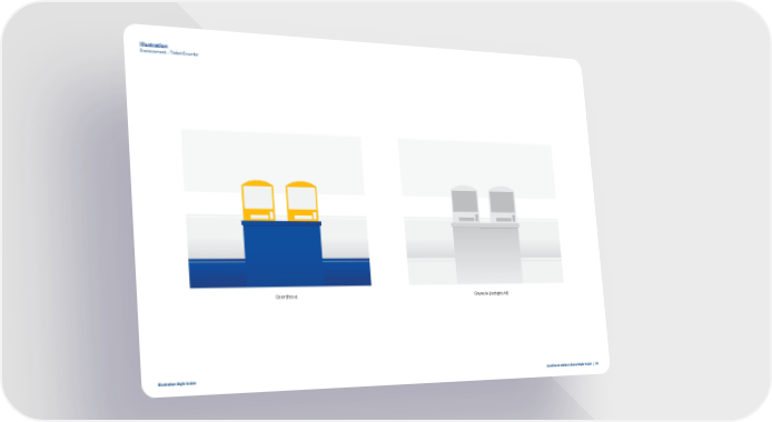 Illustration Environment - Ticket Counter Color (focus) Greyscale (background) Illustration Style Guide Southwest Airlines Brand Style Guide | 46