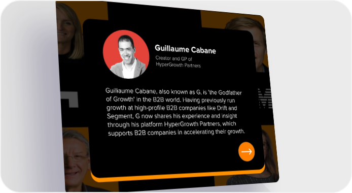 Guillaume Cabane Creator and GP of HyperGrowth Partners Guillaume Cabane, also known as G, is 'the Godfather of Growth' in the B2B world. Having previously run growth at high-proļ¬le B2B companies like Drift and Segment, G now shares his experience and insight through his platform HyperGrowth Partners, which supports B2B companies in accelerating their growth.