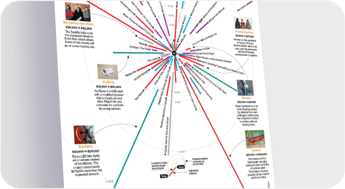 Another exciting example is Kickstarter. Kickstarter is a startup that helps creatives of any kind raise funding for entrepreneurial projects. Entrepreneurs on Kickstarter don't sell equity in their companies--they basically seek donations or pre-payments for perks. So, if you want to self-publish a book, you might set a target goal of $10,000, promise an autographed special edition to those who pledge $100, a regular special edition for those who pledge $50 and a regular book for those who pledge $20. Once the number of pledges hits your goal, people's credit cards are charged and off you go. Kickstarter helped raise $8.8 million for entrepreneurs in September and is fast-growing, with many projects exceeding their goals as the great infographic above from Bloomberg BusinessWeek shows (click to enlarge).