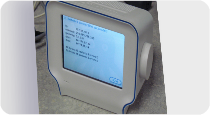 The chumby One contains a concrete example of the impact manufacturing process can have on design outcome. In the original concept art, the blue highlight around the front edge was added to evoke the feeling of a speech balloon, like those used in captioning comics - the idea being the chumby is captioning your world with snippets from the Internet.