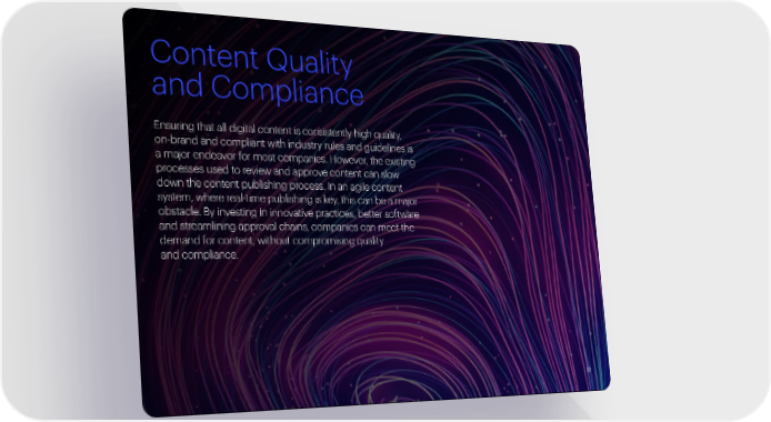 Content Quality and Compliance Ensuring that all digital content is consistently high quality, on-brand and compliant with industry rules and guidelines is a major endeavor for most companies. However, the existing processes used to review and approve content can slow down the content publishing process. In an agile content system, where real-time publishing is key, this can be a major obstacle. By investing in innovative practices, better software and streamlining approval chains, companies can meet the demand for content, without compromising quality and compliance. 22