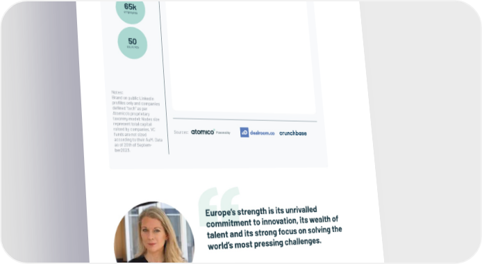Skype network visualised 950 companies 65k employess 50 countries Notes: Brand on public Linkedin profiles only and companies defined “tech” as per Atomico’s proprietary taxonmy model; Nodes size represent total capital raised by companies, VC Powered by Sources: funds are not sized according to their AuM. Data as of 20th of Septem- ber2023. Europe’s strength is its unrivalled commitment to innovation, its wealth of talent and its strong focus on solving the world’s most pressing challenges. Anna Humphrey Partner, Compensation and Bene昀椀ts, Orrick The surge in new companies led by serial founders – many of whom are alumni of European unicorns such as Skype or BlaBlaCar – is creating a net- work effect that can propel Europe into being the next tech superpower. 181 | Talent