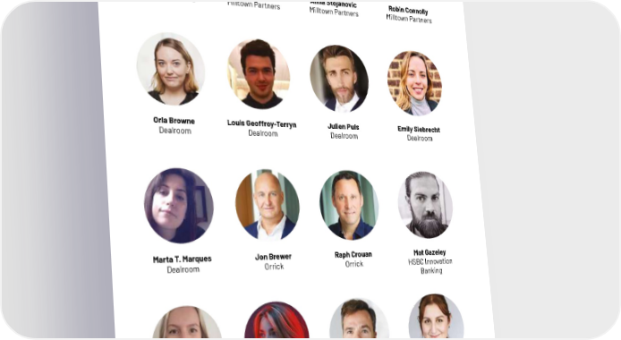 Brooke Herzog Amir Mizroch Anna Stojanovic Robin Connolly Milltown Partners Milltown Partners Milltown Partners Milltown Partners Orla Browne Louis Geoffroy-Terryn Julien Puls Emily Siebrecht Dealroom Dealroom Dealroom Dealroom Marta T. Marques Jon Brewer Raph Crouan Mat Gazeley Dealroom Orrick Orrick HSBC Innovation Banking Lauren Daly Linda Björkenheim Julien Krantz Lucrezia Lo Sordo HSBC Innovation Slush Invest Europe Invest Europe Banking | 254