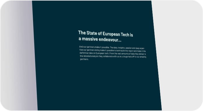 The State of European Tech is a massive endeavour... And our partners make it possible. The data, insights, passion and deep exper- tise our partners bring make it possible to both build this report and make it the de昀椀nitive take on European tech. From the vast amounts of data they deliver to the detailed analysis they collaborate with us on, a huge hats off to our amazing partners.