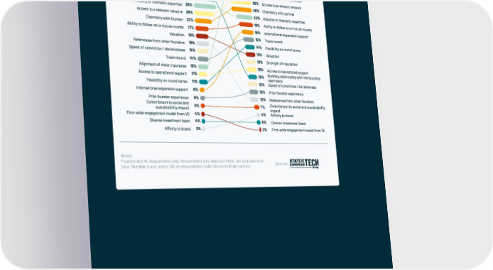What are the most important considerations when selecting an investor to lead your next round? Over the past 12 months, and thinking gnerally about the market, what in your opinion have been the most decisive factors to win a competitive deal situation? Notes: Founder and VC respondents only. Respondents who selected “other” are excluded from Sources: data. Number do not add to 100 as respondents could choose multiple options. | 100