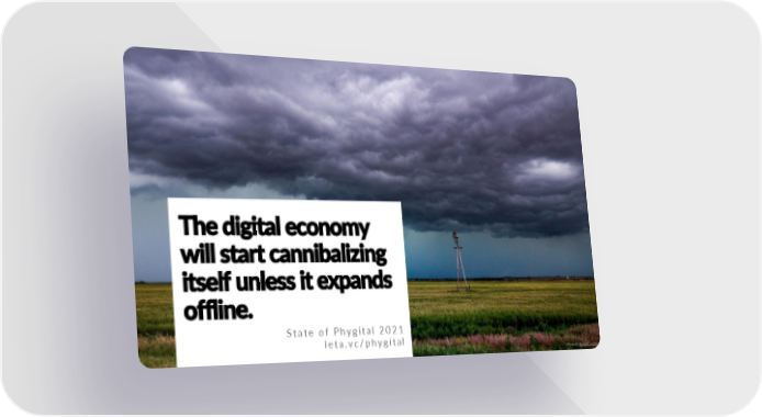 3 AL The digital economy OF PHYGITwill start cannibalizing E AT itself unless it expands ST offline. 2021 State of Phygital 2021 l e t a . v c / p h y g i t a l Photo by Raychel Sanner