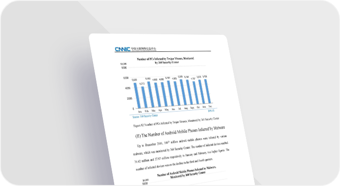 Number of PCs Infected by Trojan Viruses, Monitored by 360 Security Center 10,000 8000 6000 5,020 5,160 5,161 4,955 5,309 5,184 5,076 5,138 4,882 4,892 4,787 4,213 4000 2000 0 Jan. Feb. Mar. Apr. May. Jun. Jul. Aug. Sept. Oct. Nov. Dec. Source: 360 Security Center 2016.12 Figure 82 Number of PCs Infected by Trojan Viruses, Monitored by 360 Security Center (II) The Number of Android Mobile Phones Infected by Malware 25 Up to December 2016, 108 million android mobile phones were infected by various malware, which was monitored by 360 Security Center. The number of infected devices reached 36.62 million and 27.87 million respectively in January and February, two higher figures. The number of infected devices was on the decline in the third and fourth quarters. Number of Android Mobile Phones Infected by Malware, 10,000 5000 Monitored by 360 Security Center 4000 3,662 3000 2,787 2,381 2,192 2,250 2,055 1,933 1,995 2000 1,612 1,410 1,395 1,636 1000 0 Jan. Feb. Mar. Apr. May. Jun. Jul. Aug. Sept. Oct. Nov. Dec. Source: 360 Security Center 2016.12 Figure 83 Number of Android Mobile Phones Infected by Malware, Monitored by 360 Security Center 25 108 The data is processed through duplication eliminating. The 39th Statistical Report on Internet Development in China