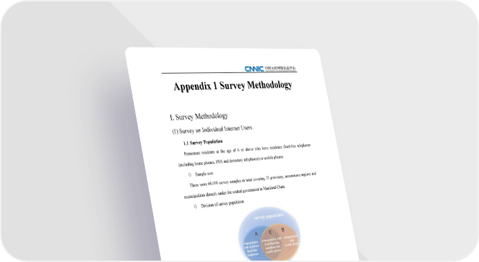 Appendix 1 Survey Methodology I. Survey Methodology (I) Survey on Individual Internet Users 1.1 Survey Population Permanent residents at the age of 6 or above who have residence fixed-line telephones (including home phones, PHS and dormitory telephones) or mobile phones ◇ Sample size There were 60,000 survey samples in total covering 31 provinces, autonomous regions and municipalities directly under the central government in Mainland China. ◇ Division of survey population survey population A B C subpopulation subpopulation with subpopulation with residence both fixed-line with fixed-line telephone and mobile phones telephones mobile phones The survey population can be divided into three categories: Subpopulation A: Survey subpopulation using residence fixed-line telephones (including residents with home phones, PHS users, students with dormitory telephones, and other users with dormitory telephones); Subpopulation B: Survey subpopulation with mobile phones; Subpopulation C: Survey subpopulation with both residence fixed-line telephones and mobile phones (there is an overlap between subpopulation A and subpopulation B, and the overlapped part is subpopulation C), C=A∩B. 1.2 Sampling Method CNNIC surveys subpopulation A, B and C. Double sampling is adopted for the survey so as 111111 The 39th Statistical Report on Internet Development in China