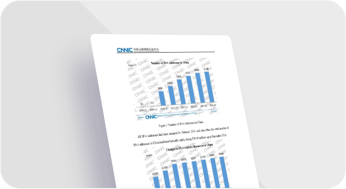 Number of IPv6 Addresses in China block/32 20594 21188 18797 16670 12535 9398 63 401 2009.12 2010.12 2011.12 2012.12 2013.12 2014.12 2015.12 2016.12 Source: Statistical Survey on Internet Development in China 2016.12 Figure 1 Number of IPv6 Addresses in China All IPv4 addresses had been assigned by February 2011 and since then the total number of IPv4 addresses in China had been basically stable, being 338.10 million up to December 2016. Changes in IPv4 Address Resources in China 10,000 33044 33053 33031 33199 33652 33810 27764 23245 2009.12 2010.12 2011.12 2012.12 2013.12 2014.12 2015.12 2016.12 Source: Statistical Survey on Internet Development in China 2016.12 Figure 2 Changes in IPv4 Address Resources in China III. Domain Name By December 2016, the total number of domain names of China had increased to 42.28 million, up 36.3% annually. 8 The 39th Statistical Report on Internet Development in China