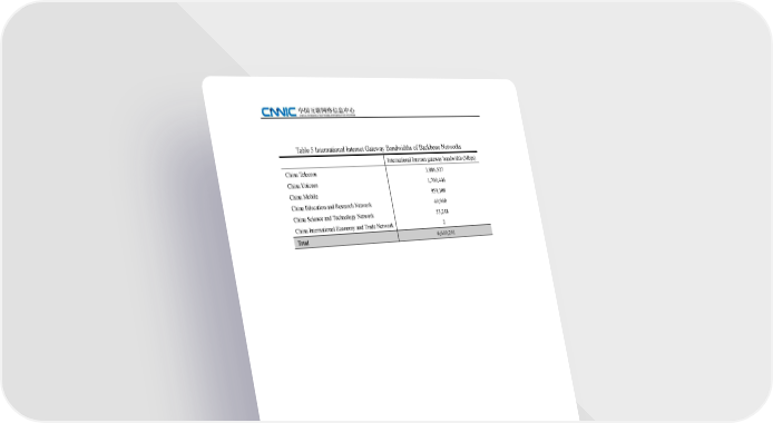 Table 5 International Internet Gateway Bandwidths of Backbone Networks International Internet gateway bandwidth (Mbps) China Telecom 3,886,527 China Unicom 1,700,446 China Mobile 959,108 China Education and Research Network 40,960 China Science and Technology Network 53,248 China International Economy and Trade Network 2 Total 6,640,291 12 The 39th Statistical Report on Internet Development in China
