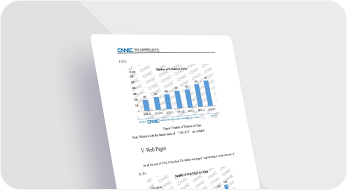14.1%. Number of Websites in China 10,000 600 500 482 423 400 320 335 300 230 268 200 191 100 0 2010.12 2011.12 2012.12 2013.12 2014.12 2015.12 2016.12 Source: Statistical Survey on Internet Development in China 2016.12 Figure 3 Number of Websites in China Note: Websites with the domain name of “.EDU.CN” are excluded. Ⅴ.Web Pages 6 As of the end of 2016, China had 236 billion web pages , representing a yearly increase of 11.2%. Number of Web Pages in China 100million 2400 2360 2123 1899 1600 1500 1227 866 800 600 161 336 0 2008.12 2009.12 2010.12 2011.12 2012.12 2013.12 2014.12 2015.12 2016.12 Source: Statistical Survey on Internet Development in China 2016.12 Figure 4 Number of Web Pages in China There were 176.1 billion static web pages and 59.9 billion dynamic web pages, accounting for 74.6% and 25.4% of total web pages, respectively. 6 10 Data source: Baidu Online Network Technology (Beijing) Co., Ltd. The 39th Statistical Report on Internet Development in China
