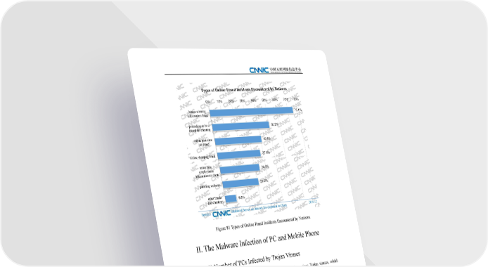 Types of Online Fraud Incidents Encountered by Netizens 0% 10% 20% 30% 40% 50% 60% 70% 80% bonus-winning 75.1% information fraud pretending to be a 50.2% friend for cheating online part-time 40.8% job fraud online shopping fraud 37.6% using fake employment 34.5% information to cheat phishing websites 31.2% other frauds 9.6% and cheatings Sourceļ¼ Statistical Survey on Internet Development in China 2016.12 Figure 81 Types of Online Fraud Incidents Encountered by Netizens II. The Malware Infection of PC and Mobile Phone (I) Number of PCs Infected by Trojan Viruses 24 Up to December 2016, 247 million PCs were infected by various Trojan viruses, which was monitored by 360 Security Center. The monthly number of infected PCs ranged from 40 million to 55 million. According to the monitoring data by province, the top three provinces in the number of PCs infected by Trojan viruses were Guangdong, Zhejiang and Jiangsu. 24 The data is processed through duplication eliminating. 107107 The 39th Statistical Report on Internet Development in China