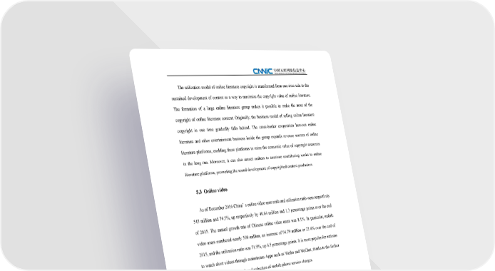 The utilization model of online literature copyright is transformed from one-time sale to the sustained development of content as a way to maximize the copyright value of online literature. The formation of a large online literature group makes it possible to make the most of the copyright of online literature content. Originally, the business model of selling online literature copyright in one time gradually falls behind. The cross-border cooperation between online literature and other entertainment business inside the group expands revenue sources of online literature platforms, enabling these platforms to mine the economic value of copyright resources in the long run. Moreover, it can also attract authors to continue contributing works to online literature platforms, promoting the sound development of copyrighted content production. 5.3 Online video As of December 2016 China’s online video user scale and utilization ratio were respectively 545 million and 74.5%, up respectively by 40.64 million and 1.3 percentage points over the end of 2015. The annual growth rate of Chinese online video users was 8.1%. In particular, mobile video users numbered nearly 500 million, an increase of 94.79 million or 23.4% over the end of 2015, and the utilization ratio was 71.9%, up 6.5 percentage points. It is more popular for netizens to watch short videos through mainstream Apps such as Weibo and WeChat, thanks to the further improvement of 4G network and reduction of mobile phone service charges. The 39th Statistical Report on Internet Development in China 7575