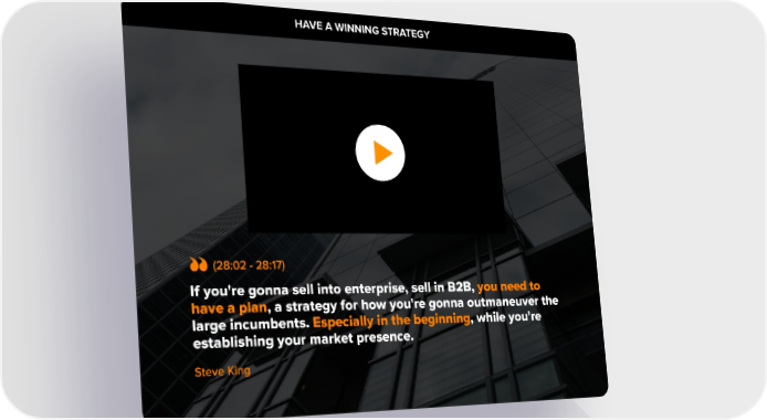 HAVE A WINNING STRATEGY 1. Domestic & General started out over 100 years ago, ensuring cattle and sheep rights. So not long after the Titanic went down there was a need all of a sudden to have protection and insurance on your livestock. (28:02 - 28:17) If you're gonna sell into enterprise, sell in B2B, you need to have a plan, a strategy for how you're gonna outmaneuver the large incumbents. Especially in the beginning, while you're establishing your market presence. Steve King