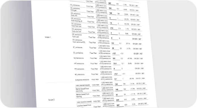 6 Our sustainability indicators Sustainability Key Performance Indicators Fiscal Year/ (KPIs) September 30th Unit FY 2023 FY 2022 +/– Standards Climate action Greenhouse gas emissions 1,000 metric tons Total Fiscal Year of CO e emissions 387 393 −1.6% GRI 305-1, WEF 2 1,000 metric tons CO emissions Fiscal Year of CO e emissions 342 357 −4.4% GRI 305-1, WEF 2 2 CO emissions 1,000 metric tons 2 from gas Fiscal Year of CO e emissions 109 138 −20.8% GRI 305-1, WEF 2 CO emissions 1,000 metric tons 2 from LPG Fiscal Year of CO e emissions 5 1 332.2% GRI 305-1, WEF 2 CO emissions 1,000 metric tons 2 from heating oil Fiscal Year of CO e emissions 15 2 643.9% GRI 305-1, WEF 2 CO emissions 1,000 metric tons 2 from fleet fuel Fiscal Year of CO e emissions 210 213 −1.7% GRI 305-1, WEF 2 CO emissions 1,000 metric tons 2 from site fuel Fiscal Year of CO e emissions 3 3 5.8% GRI 305-1, WEF 2 CO emissions 1,000 metric tons 2 from coal Fiscal Year of CO e emissions 0 0 GRI 305-1, WEF Scope 1 2 CO emissions 1,000 metric tons 2 from technical CO Fiscal Year of CO e emissions 0.2 0.1 37.1% GRI 305-1, WEF 2 2 1,000 metric tons SF emissions Fiscal Year of CO e emissions 30 23 31.7% GRI 305-1, WEF 6 2 1,000 metric tons CH emissions Fiscal Year of CO e emissions < 0,1 < 0,1 GRI 305-1, WEF 4 2 1,000 metric tons NO emissions Fiscal Year of CO e emissions 0.0 0.2 −91.8% GRI 305-1, WEF 2 2 1,000 metric tons HFC emissions Fiscal Year of CO e emissions 15.4 12.1 26.8% GRI 305-1, WEF 2 1,000 metric tons PFC emissions Fiscal Year of CO e emissions 0 0 GRI 305-1, WEF 2 1,000 metric tons NF emissions Fiscal Year of CO e emissions < 0,1 < 0,1 GRI 305-1, WEF 3 2 1,000 metric tons Acetylene emissions Fiscal Year of CO e emissions 0.1 1 −85.9% GRI 305-1, WEF 2 1,000 metric tons Total (market based) Fiscal Year of CO e emissions 163 189 −13.5% GRI 305-2, WEF 2 Market based from 1,000 metric tons electricity Fiscal Year of CO e emissions 142 164 −13.9% GRI 305-2, WEF 2 Market based from 1,000 metric tons heating Fiscal Year of CO e emissions 22 24 −11.1% GRI 305-2, WEF Scope 2 2 1,000 metric tons Total (location based) Fiscal Year of CO e emissions 624 670 −6.8% GRI 305-2, WEF 2 Location based from 1,000 metric tons electricity Fiscal Year of CO e emissions 597 633 −5.7% GRI 305-2, WEF 2 Location based from 1,000 metric tons heating Fiscal Year of CO e emissions 28 37 −25.3% GRI 305-2, WEF 2 1,000 metric tons GRI 305-1, 305-2, Scope 1+2 Total Fiscal Year of CO e emissions 550 582 −5.5% WEF 2 metric tons of CO2e Scope 1+2 intensity emissions per Total Fiscal Year Mio. € revenue 7.1 8.1 −12.5% GRI 305-4, WEF 1,000 metric tons Scope 1+2 reduction to last year Total Fiscal Year of CO e emissions 32 13 144.3% GRI 305-5, WEF 2 SIEMENS SUSTAINABILITY REPORT 2023 109