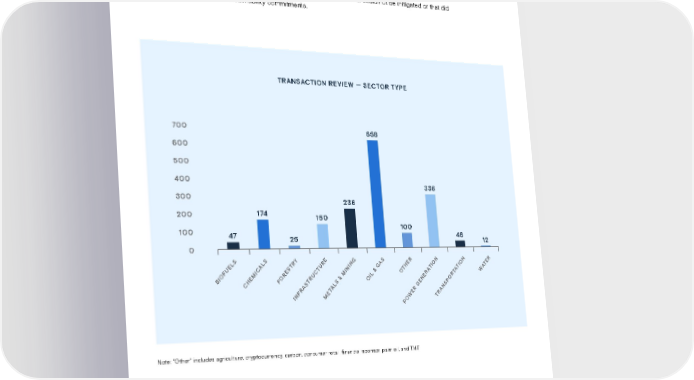 GOVERNANCE 2021 Transaction Breakdown and Highlights In 2021, the Sustainable Finance Group reviewed approximately 1,800 transactions for environmental and social risks. We identified and managed EHS risks in several potential transactions and portfolio companies — and in some cases, decided to forgo participation due to the high levels of risk that could not be mitigated or that did not align with our policies or sustainability commitments. TRANSACTION REVIEW — SECTOR TYPE 700 658 600 500 400 336 300 238 200 174 150 100 100 47 25 48 12 0 LS S Y E G S R N N R L R R N A E O E E A T U H I IO U C S T NI T T AT F E C OT A A W IO MI R RU MI IL & G ER RT B HE FO T & O O C S EN AS L G SP R A F T ER RAN IN ME W T O P Note: “Other” includes agriculture, cryptocurrency, carbon, consumer retail, financial sponsor, palm oil, and TMT Sustainability Report 2021 Governance | 2021 Transaction Breakdown and Highlights 90
