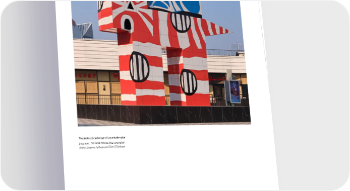 Swire Properties Brochure Flipbook Page 63 Page 65The indirect exchange of uncertain value Location : CHINESE MAINLAND, Shanghai Artist : Joanne Tatham and Tom O’Sullivan
