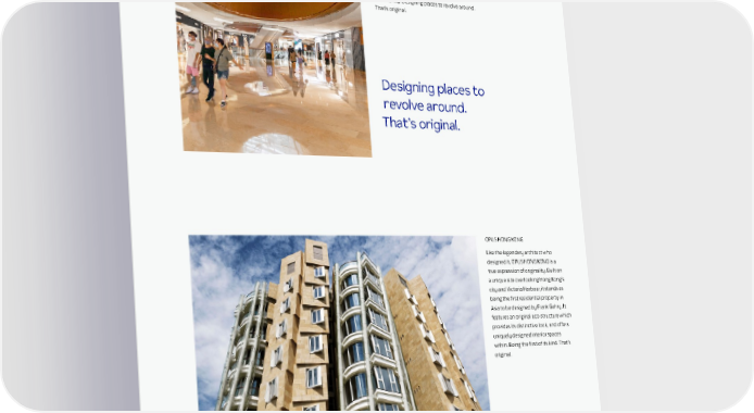 Taikoo Hui Guangzhou Designed by the acclaimed architectural studio Arquitectonica, Taikoo Hui has become one of Guangzhou’s landmarks and a business, shopping, dining and lifestyle destinations. Not to mention a source of the region’s growth. At its heart, it is an iconic atrium, pulling together nearly 200 shops and restaurants. Surrounding which, two Grade-A office towers complement Guangzhou’s first five-star Mandarin Oriental hotel and serviced apartments, which help build Taikoo Hui’s strong sense of community. Designing places to revolve around. That’s original. Designing places to revolve around. That’s original. OPUS HONG KONG Like the legendary architect who designed it, OPUS HONG KONG is a true expression of originality. Built on a unique site overlooking Hong Kong’s city and Victoria Harbour, it stands as being the first residential property in Asia to be designed by Frank Gehry. It features an original eco-structure which provides its distinctive look, and offers uniquely designed interior spaces within. Being the first of its kind. That’s original. Being the first of its kind. That’s original.