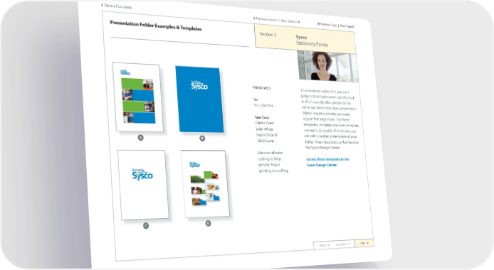 Table of Contents Previous Section | Next Section Previous Page | Next Page Presentation Folder Examples & Templates SSecection 2tion 2 Sysco Stationery/Forms PRINTER SPECS It’s a common saying that you can’t judge a book by its cover, but the truth Size is, that’s exactly what people do. So 9 x 12 inches we’ve put these attractive presentation folders together to help you make Paper Stock a great 昀椀rst impression. Use these Classic Crest templates, or create your own using the Solar White examples as a guide. If necessary, you Super Smooth can add a pocket to the inside of your AA BB 130 # Cover folder. These resources can be found in the Sysco Design Center. Use over all satin coating to help Access these templates in the prevent 昀椀nger Sysco Design Center. printing or scu昀케ng. C DD Version 5.0 November 2011 Page 46