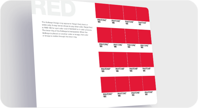 RED The Bullseye Design may appear in Target Red, black or white only. It may not be shown in any other color. Target Red is PMS 186 for spot color and 4/100/85/6 for 4-color process. The inner ring of the Bullseye is transparent. When the Bullseye is placed on another color or image, that color or image is visible through the inner ring. PANTONE ® 18 6 PANTONE ® 18 6 PANTONE ® 18 6 PANTONE ® 18 6 PANTONE ® 18 6 PANTONE ® 18 6 PANTONE ® 18 6 PANTONE ® 18 6 PANTONE ® 18 6 PANTONE ® 18 6 PANTONE ® 18 6 PANTONE ® 18 6 PANTONE ® 18 6 PANTONE ® 18 6 PANTONE ® 18 6 PANTONE ® 18 6