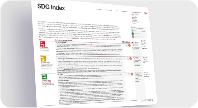 0 II SDG Index Introduction Environmental Social Governance Indexes and Glossary About This Report GRI Index SASB Index SDG Index TCFD Index UNGPRF Index Glossary We recognize the importance of the United Nations 2030 Agenda for Sustainable Development. The UN Sustainable Development Goals (SDGs) call on governments, business and civil society organizations to address the most urgent problems facing our world today. The goals urge all sectors of society to drive greater participation and leadership, and invest more resources into solutions that reduce inequality and tackle the escalating climate emergency. We value the significant role the SDGs play in driving equitable, inclusive and sustainable development, and we’re proud to share how we’re contributing to those that most align with our ESG priorities. We also invit e our stakeholders and partners to join us in contributing toward this blueprint for a more sustainable future. With fewer than 10 years left to deliver the 2030 Agenda, it is more important than ever that local, national and global partners mobilize during what the UN has referred to as the “Decade of Action.” That’s why we have taken our disclosures one step further, aligning with the SDG Business Benchmarks developed by the UN Global Compact to make the global goals more relevant for business, and showing how we’re taking action. Target Forward Ambition key: Design and elevate sustainable brands Innovate to eliminate waste Accelerate opportunity and equity SDG Our Goals and Accomplishments Aligned Target Forwar d Ambition Who Is Impacted Aligned SDG Targets and Related SDGs 1. No Poverty End poverty in all its forms everywhere. Our Accomplishments: • We support Friendship Bridge, an organization empowering indigenous women in Guatemala and building relationships in rural communities where poverty rates are at their highest. By combining microfinance, skills-based education and pr eventive health services, paths are created to sustain empowerment, business development and reduced household vulnerability. • Our DailyPay advance pay app allows team members to request their earned but unpaid wages instantly or next day, providing tools to help with budgeting and savings. • Team members facing financial hardship after a natural disaster or unforeseen personal events can apply for up to a $2,000 grant through the Team Member Giving Fund. See chapters: Serving and Strengthening Communities , Supporting Our Team Members For more details: Community Engagement , Target Circle Community Giving , Corporate Giving , Global Foundation Programs , Grants , Hometown Foundation Progr ams , National Foundation Programs , Target Foundation , Target Foundation – Charter • Civil society organizations • Communities within our supply chain • Team members SDG Targets: 1.4, 1.5, 1.A Related SDG: 5 2. Zero Hunger End hunger, achieve food security and improved nutrition and promote sustainable agriculture. Our Accomplishments: • Target leverages several financial and in-kind resources to support disaster and hunger relief, including pop-up food and essentials giveaway events in response to civil unrest. • In support of our ambition to leverage soil health practices to improve at least one million acres of land by 2025, we are partnering with several suppliers on initiatives that promote regenerative agriculture. We also co-funded a five-year, $8.5 million project with Cargill, McDonald’s and the U.S. Department of Agriculture to help Nebraska farmers advance soil health. • Team members volunteer and provide food donations that help address food insecurities. We have partnered with Feeding America to donate our excess food, utilizing store tools and technology. In 2021, 106 million pounds of food were donated. See chapter: Serving and Strengthening Communities , Climate Action , Responsible Resource Use For more details: Community Engagement , Target Circle Community Giving , Corporate Giving , Global Foundation Programs , Grants , Hometown Foundation Programs , National Foundation Programs , Target Foundation , Target Foundation – Charter , Waste & Circular Economy • Civil society organizations • Communities where we operate • Communities within our supply chain • Team members SDG Targets: 2.1, 2.2, 2.4 Related SDGs: 8, 12 3. Good Health and Well-Being Ensure healthy lives and promote well-being for all at all ages. Our Goals: • By 2023, Target aims to eliminate complexity and barriers to entry by offering easily accessible benefits and r esources to all Target team members focused on learning and career advancement, physical and mental health, family support and financial well-being. • By 2025, Target plans to increase access to quality, affordable healthcare for all team members and families. Our Accomplishments: • Programs like Target Clean incentivize national brands and merchants to avoid using chemicals of concern. We use the Chemical Footprint Project to calculate our aggregate use of chemicals. Our Chemicals P olicy helps eliminate chemicals through transparent and progressive management. • We publish numerous lists for unwanted chemicals and restricted substances, ranging from household cleaning and personal care to owned brand clothing and non-clothing fabrics. We prohibit cer tain chemicals in manufacturing of owned brand products and have invested over $7 million in new green chemistry innovation since 2017. • Our Wellness icons for products enable guests to make informed decisions based on their individual needs (e.g., gluten-free, plant-based, vegan, non-GMO, nutritious, organic, bio-based, cruelty free, non-t oxic). • We offer team members schedules that promote work-life balance, while providing access to employee assistance programs that are free and confidential (e.g., clinicians, virtual care visits and fitness/well-being pr ograms). In 2021, Target launched a new debt-free education assistance benefit, giving all team memb