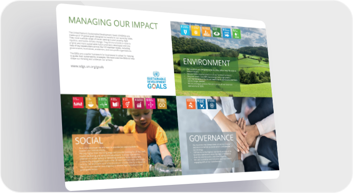 MANAGING OUR IMPACT The United Nation’s Sustainable Development Goals (UNSDGs) are made up of 17 global goals designed to transform our world by 2030. They cover a whole range of issues seeking to end poverty, 昀椀ght injustice, and tackle climate change. They aim to provide a route to a fairer and more sustainable future and were developed with the help of key stakeholders across the 193 member states, including governments, businesses, academics, and non-pro昀椀t organisations. The SDGs are a useful framework for businesses to adopt for helping to guide their sustainability strategies. We have used the SDGs to help shape our thinking and underpin our actions. ENVIRONMENT www.sdgs.un.org/goals • Our products are designed to be durable, with a long life cycle to reduce impact. • We use 100% recycled plastic in all our furniture products. • Recycled plastic uses 88% less energy than virgin plastic. • Low maintenance of furniture means harsh paints and chemicals are no longer needed. • We are aiming to achieve Net Zero across all our business operations by 2030. SOCIAL GOVERNANCE • As a rural employer we are keen to provide job opportunities to • Our business has always been driven by a social support our local economy. and environmental purpose which is embedded in • We pay higher than the living wage and provide training for all our sta昀昀. our strategy. • Health, wellbeing and safety are paramount in all our operations • TDP works to the highest standards across all its whether it’s in the factory or delivering products to our customers. business operations, ensuring legal compliance, • Community engagement both in the UK and internationally are a high diversity and inclusion, and due diligence. priority. We work with local schools and our chosen charity is Aquabox. • We take a positive and inclusive approach when • We carry out supplier due diligence to ensure legal compliance and engaging with all our stakeholders. good governance.