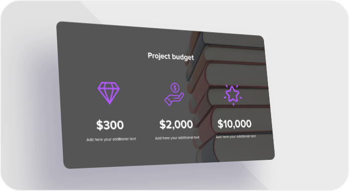Project budget $300 $2,000 $10,000 Add here your additional text Add here your additional text Add here your additional text