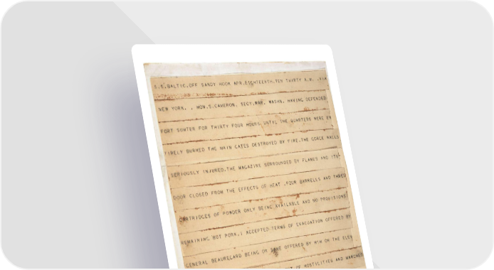 Telegram Announcing the Surrender of Fort Sumter (1861)The first engagement of the Civil War took place at Fort Sumter on April 12-13. After 34 hours of fighting, the Union surrendered to the Confederates. Original