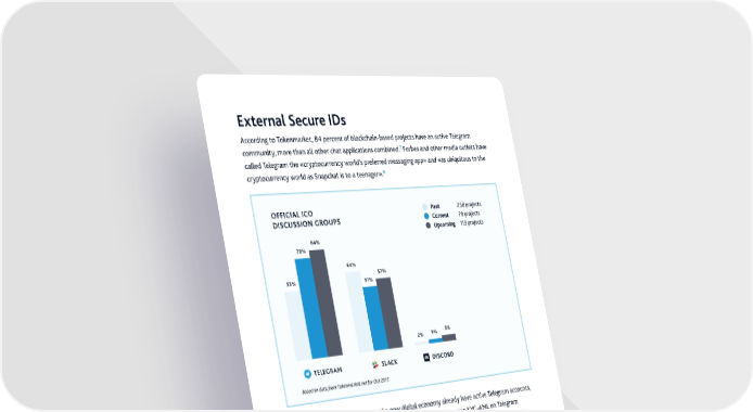 External Secure IDs According to Tokenmarket, 84 percent of blockchain-based projects have an active Telegram 7 community, more than all other chat applications combined. Forbes and other media outlets have called Telegram the «cryptocurrency world’s preferred messaging app» and «as ubiquitous to the cryptocurrency world as Snapchat is to a teenager».8 OFFICIAL ICO Past 238 projects DISCUSSION GROUPS Current 79 projects Upcoming 113 projects 84% 78% 64% 53% 57% 51% 2% 3% 5% TELEGRAM SLACK DISCORD Based on data from Tokenmarket.net for Oct 2017. Because the majority of actors in the new digital economy already have active Telegram accounts, it is natural for Telegram to offer a secure universal ID. After passing KYC-AML on Telegram once, users will get a virtual passport to log into services that require user verification, thereby eliminating a major point of friction for anyone engaging with crypto-assets. All private data (such as passport scans) will eventually be stored end-to-end encrypted with a key known only to the owners. Telegram’s distributed servers (and later the TON Blockchain) will have no access to this information, but will instead store a hash of the value to be able to confirm that the data was verified when the user obtained their secure ID. Third parties will be able to add further verifications to these virtual passports. 7. Data from Tokenmarket, as of October 2017. 8. Russia Fines Cryptocurrency World's Preferred Messaging App, Telegram. 12 / 23