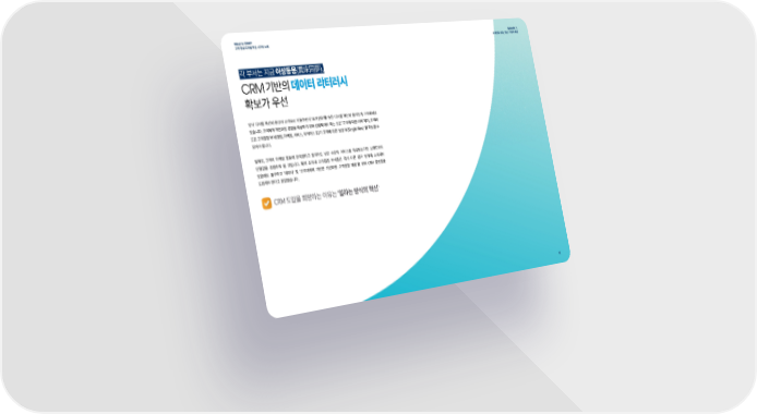 What is CRM? Episode 1. 고객�중심�디지털�혁신�시크릿�노트 초개인화�시대, '유난' 기업의�성공 각�부서는�지금 이상동몽(異床同夢), CRM 기반의 데이터�리터러시 확보가�우선 앞서�디지털�혁신의�중심이�고객으로�이동하면서 ʻ초개인화'를�위한�디지털�혁신의�움직임이�가속화되고 있습니다. 고객에게�개인화된�경험을�제공하기�위해�선행되어야�하는�것은 '고객에�대한�이해'이며, 조직내 모든�고객접점�부서(영업, 마케팅, 서비스, 이커머스�등)가�고객에�대한 '싱글�뷰(Single View)'를�확보할�수 있어야�합니다. 일례로, 고객이�마케팅�활동에�만족했다고�할지라도�낮은�수준의�서비스를�제공받는다면�브랜드와의 단절감을�경험하게�될�것입니다. 특히�조직내�고객접점�부서들은�각기�다른�업무�영역에�소속되어 있음에도�불구하고 '데이터' 및 '고객이해에�기반한�개인화된�고객경험�제공'을�위해 CRM 플랫폼을 도입해야�한다고�응답했습니다. CRM 도입을�희망하는�이유는 '일하는�방식의�혁신' 14