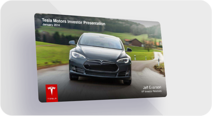 Tesla Motors Investor Presentation January 2014 Jeff Evanson VP Investor Relations